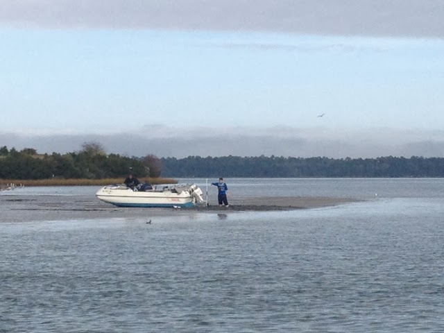 Today Dad and I struggled to re-acclimate ourselves to life off the dock and back on the water. Although the boat was now more organized from being in a single port for a few days, it was still hard to get back in the groove. As we left a Canadian sailor we had met on the dock set sail behind us. We played leap frog with him for a few miles down the ICW. Having a brief conversation with him in the lulls, we discovered that his final destination will be Cuba, Dad is extremely jealous. Now that I think about how close Cuba is to our travel stops, it seems foolish not to go there as well. Unfair. Once we turned the engine on we left the Canadian in the dust. We no longer have the luxury of traveling at our own pace, Corinne gets to Charleston onThanksgiving Day. However, friends of ours had warned us to pass through Lockwoods Folly at high tide. We could have made it to the Folly, but not at high tide so we stopped short in Southport. The harbor at Southport was very small, the size of a cove. Docks lined the shore, two were restaurant docks, those at the very end were the public docks and they were full. Our cruising guide indicated that we could anchor right in the middle of the harbor, the trouble was that it seemed we would be in everyone's way. I would say that there is room for two boats to anchor there and hopefully no large trollers trying to leave the dock. Luckily a couple on the dock shouted to us, asking if we wanted to raft up. They had a cool 70's power boat, white with seafoam green trim, with a generator, washer and dryer on board. The couple told us of all the cool spots to go to before the sun set. Dad and I followed their directions and took a short walk downtown. Every local we met informed us that Southport is affectionately known as "the east coast Hollywood." The movie Safe Haven was filmed here, the pride and joy of the community apparently. The town didn't reveal any obvious movie making qualities however. It had some cute stores and sweet shops but nothing Hollywood-esk. We did find out that they would be holding a Charles Dickens festival the very next day in Southport. I don't know what exactly that would entail but I was dying to go. I think Dad wanted to as well but after discussing it and listening to the weather we knew that we didn't have an extra day to spare here. Before getting back on the boat Dad met a shrimper on the dock. We had a long conversation with him. He had been in the Navy, lived in Groton for a bit, and was incidentally an extra in Safe Haven. Contrary to what the Southport locals said about the major film presence in the town, the shrimp business seemed to be the life and soul of the area. We bought three pounds of shrimp from him for ten dollars. Back on the boat we steamed them and Dad made a sweet and spicy Cajun sauce. I've never had to pick the heads off a shrimp before I ate it until now. It was very time consuming but there was no doubt that these shrimp were fresh. We went to bed lamenting the time we could've had here if we stayed longer but grateful that we had full bellies and that I had something to write about.